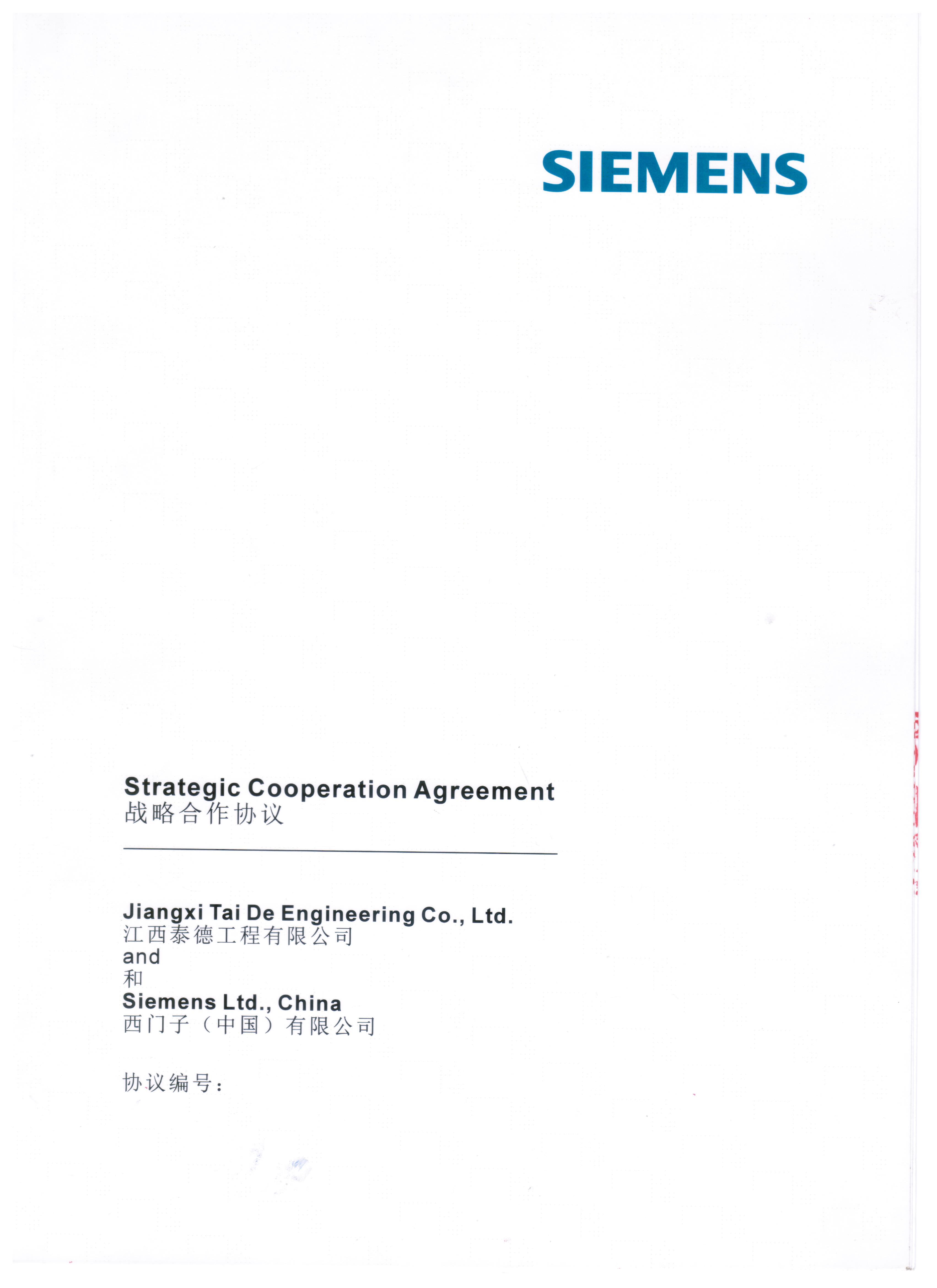 首頁 > 企業(yè)資質 > 企業(yè)資質 > 西門子戰(zhàn)略合作協(xié)議